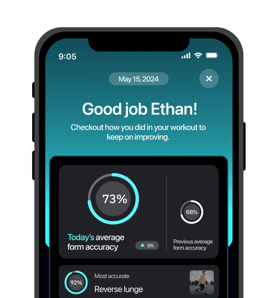 Dive even deeper into the progress of each rep and showcase accuracy, number of alerts, and weight carried. Users mentioned how satisfying it is to see their achievements over time.